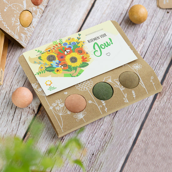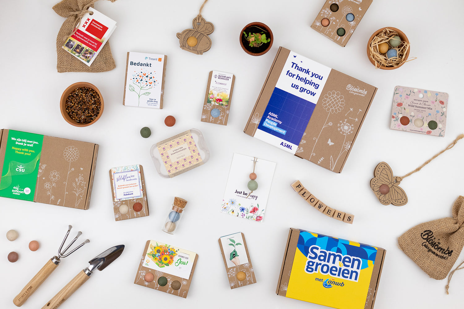Perfect als duurzaam geschenk, promotiemateriaal of relatieversterker. Én personaliseerbaar! Blossombs passen BIJ elk moment. Van beurs tot bedankje, van onboarding tot MVO-campagne. Blossombs brengen je merk tot bloei.